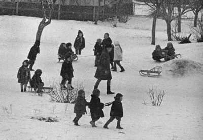 © Lietuvos nacionalinio kultūros centro archyvas. Užrašyta Marcinkonių k., Varėnos r. Žaidžia Marcinkonių k. vaikai ir vadovė Rima Avižienienė.