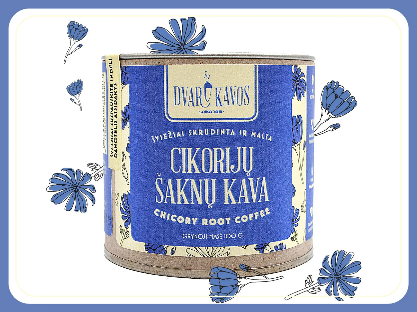 The first factory in our region producing coffee from roasted grains with chicory was established in Poland in 1818. In Lithuania, the largest coffee and chicory factories between the wars were in Kaunas – Neris and the chocolate factory Tilka. Two farms in the Kėdainiai region are known to have grown and produced chicory root coffee: the chicory plantation ‘Ragas’ in Gudžiūnai by the agronomist E. Širmulis, and the chicory coffee manufactory in Gėlainiai by Kondrotas.
